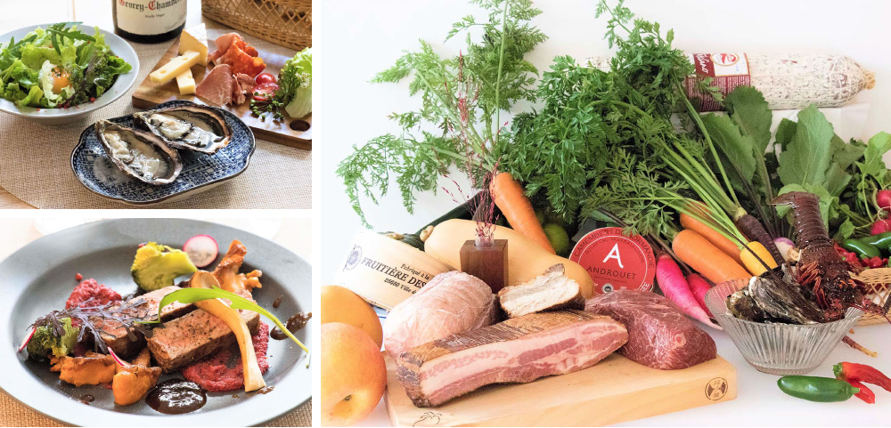 厳選したフランスの有名作り手のワインや、オーナーこだわりの希少ワイン。シエフがパリからの食材や、日本の各地から選りすぐりの産地直送食材を使って調理する French Bistro 料理の数々。